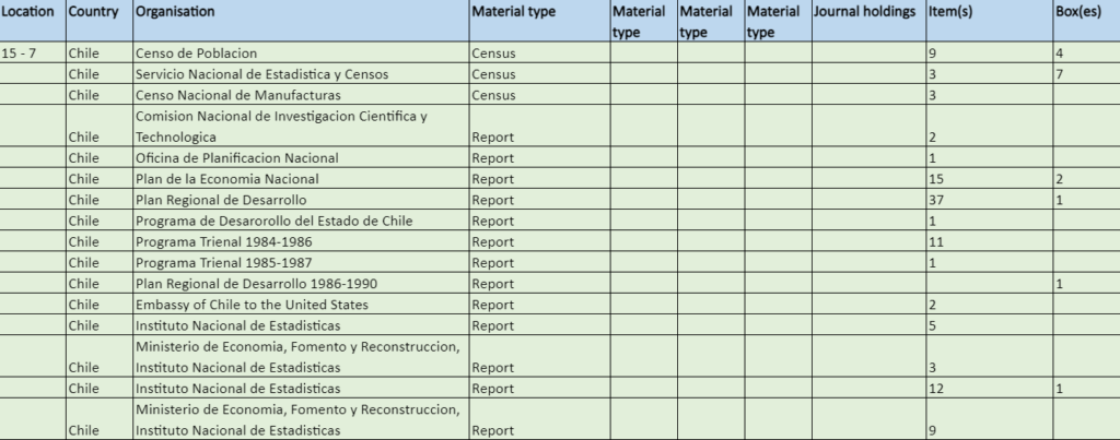 Well with a bit of good old-fashioned tidying up of the space for starters, (tidy workspace tidy librarian brain) including removing all the extraneous material and matter that had found its way into the basement over the years. A good old declutter always makes things better (although my other half dreads it when I utter that word) Then we set about trying to understand what we had become custodians of. We did this by reading through documentation created by previous librarians and IDS academics, and by physically going through the collection a shelf at a time, creating a listing of what organisations and countries were represented in the collection.