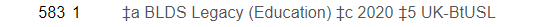 The University of Sussex (UoS) catalogues using Resource Description and Access (RDA) , Machine Readable Cataloguing Standards (MARC21), and Library of Congress Subject Headings (LCSH), along with the Library of Congress classification scheme (LOC). As the collection catalogue would be hosted on the UoS Library catalogue it did not make sense to catalogue in a different way. We however needed to add in BLDS-specific information to aid discoverability. We did this in discussion with the UoS cataloguing team and decided to add in a 583 field to our schema, which would contain information on what we decided to call ‘themes’.
