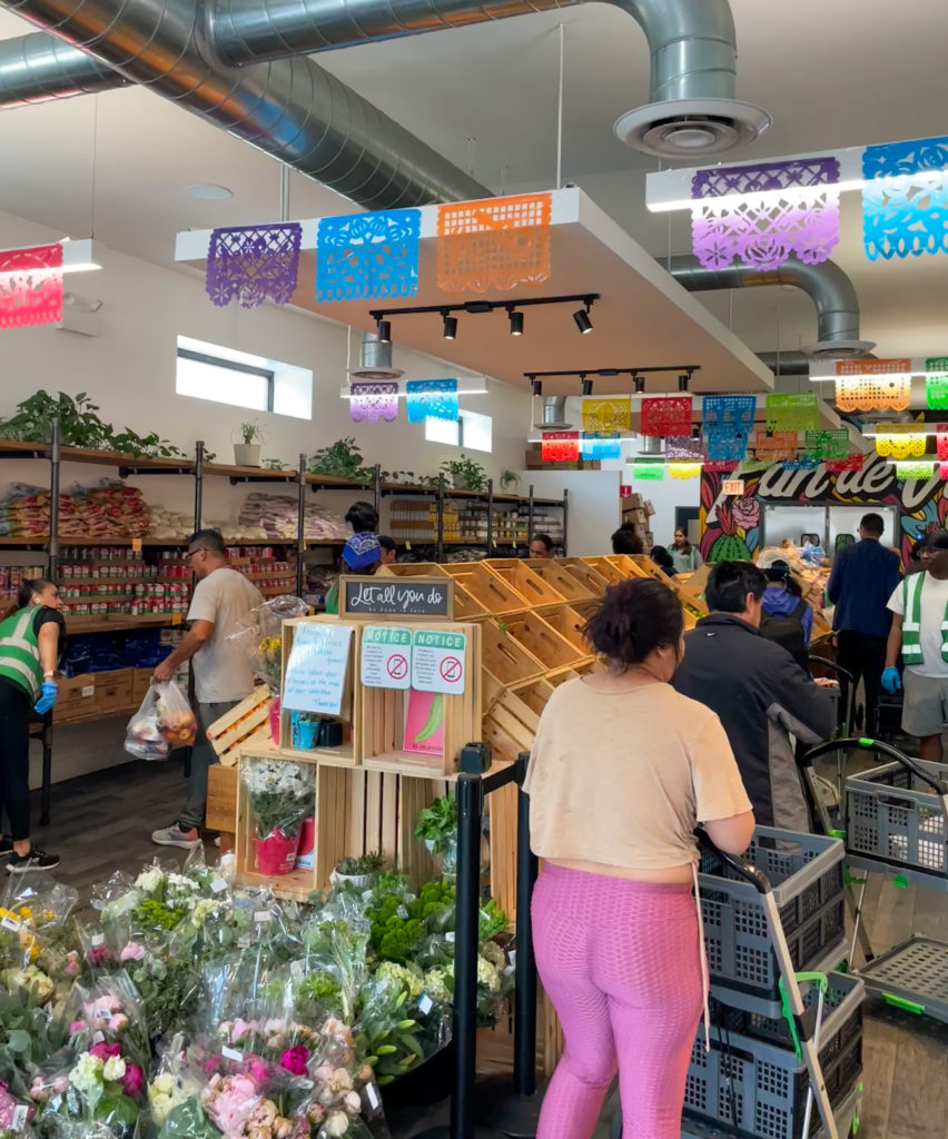 Asylum seekers ‘shop’ for fresh groceries at a community food pantry designed to offer the experience of a market in Little Village, a Latino neighbourhood in Chicago. Photo by Melissa Gatter.
