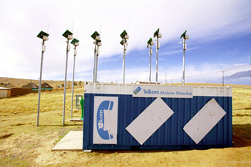 Solar panels and telephones in Qunu in the Eastern Cape. South Africa. Creative Commons photo: Trevor Samson / World Bank.
